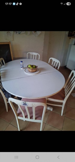 Asztal étkezőasztal fehér 4 db thonet székkel eladó