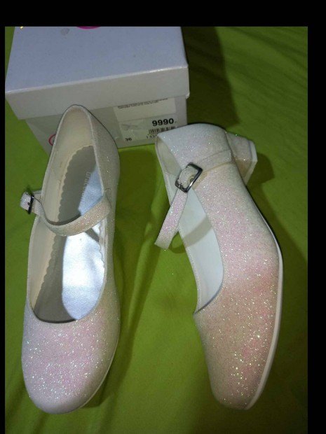 Új fehér csillogós alkalmi ünnepi elegáns ünnepi cipő, gyerek szandál