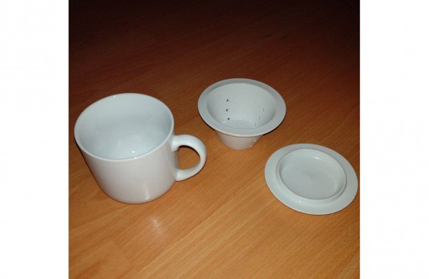 Régi "Zsolnay" Nagy Fehér Virágmintás Porcelán Bögre / Findzsa