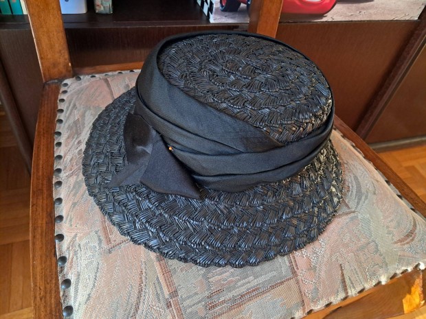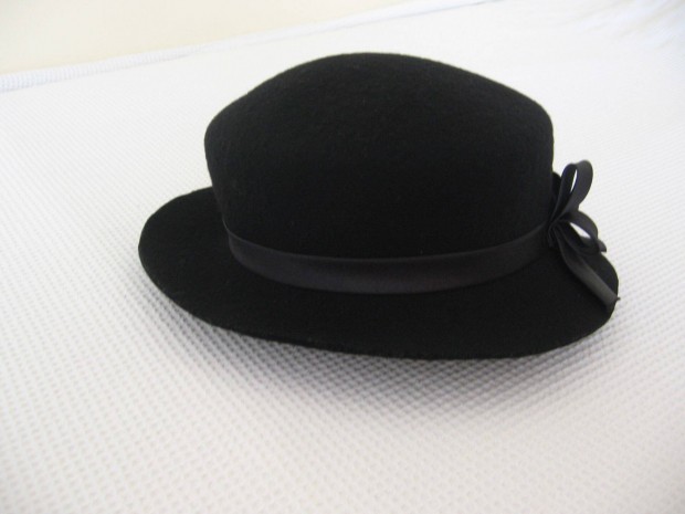 Fekete női kalap, széles ripsz szalaggal, kellék
