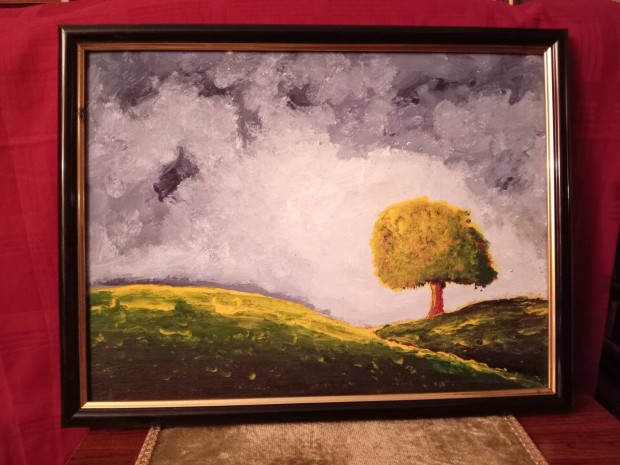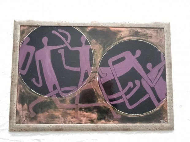 Tóth Rozália festmény vastag fa keretben, különleges textúrával