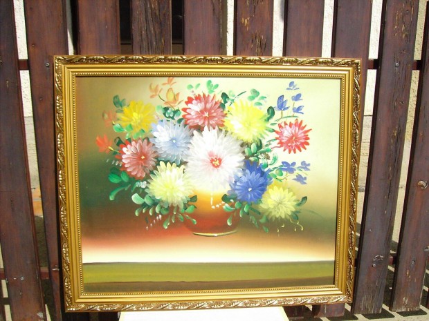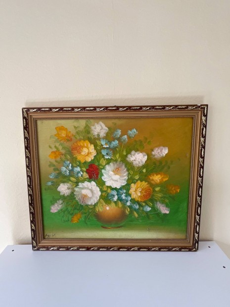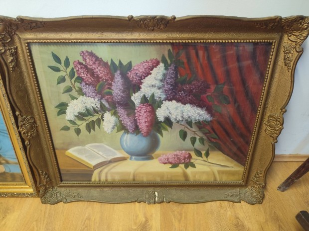 Orgona csendélet festmény 71x50 cm ,míves keretben, kortárs, jelzett