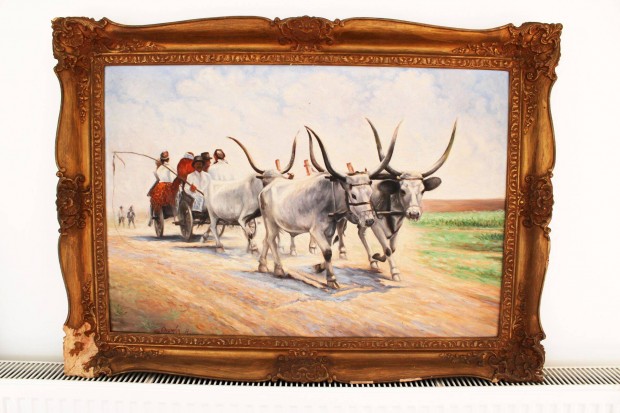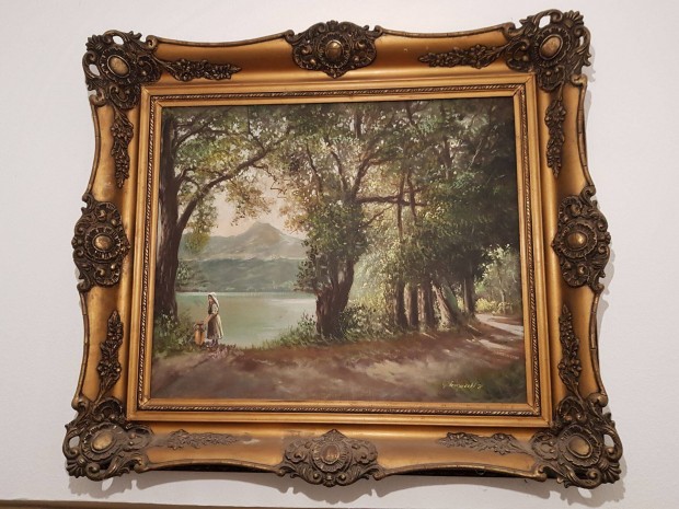 Nagyméretű Csizmár festmény blondell keretben - szignózott