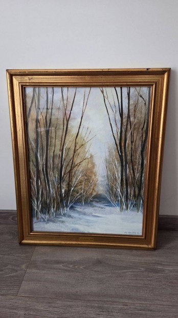 Ifj. Keleti Jenő festmény téli erdei hangulat, aranyozott keretben