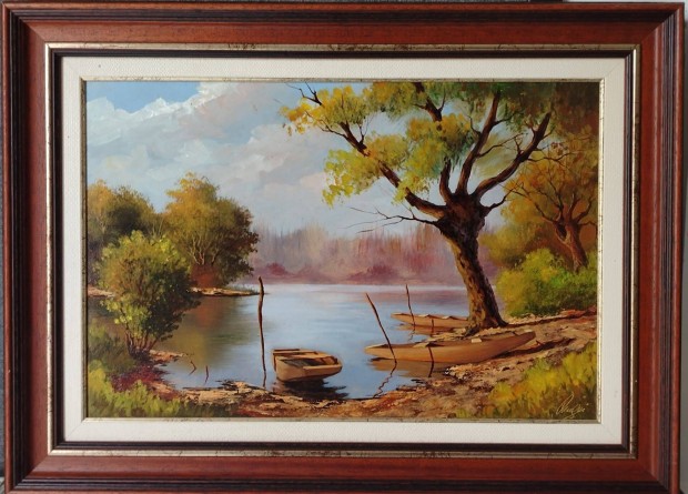 Rengei László festmény, 40x60 cm, kerettel: 55x75 cm