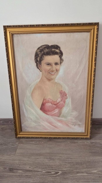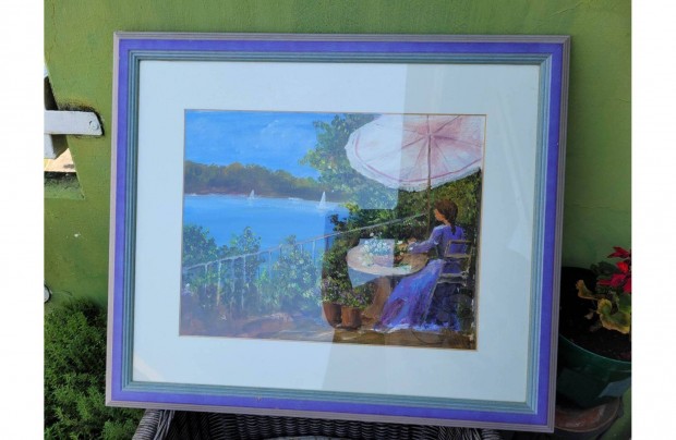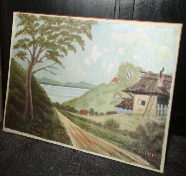 Szignózott festmény farostlemezen fa keretben üveglappal