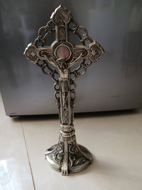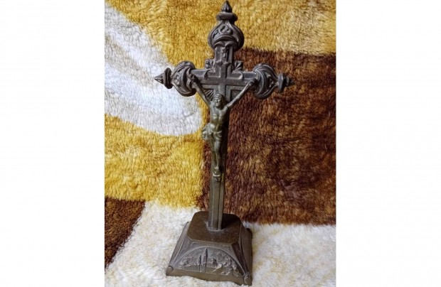 Márvány talpon 24 cm magas Antik Feszület ritka egyedi db