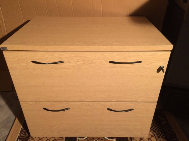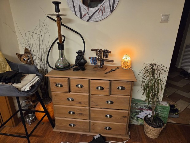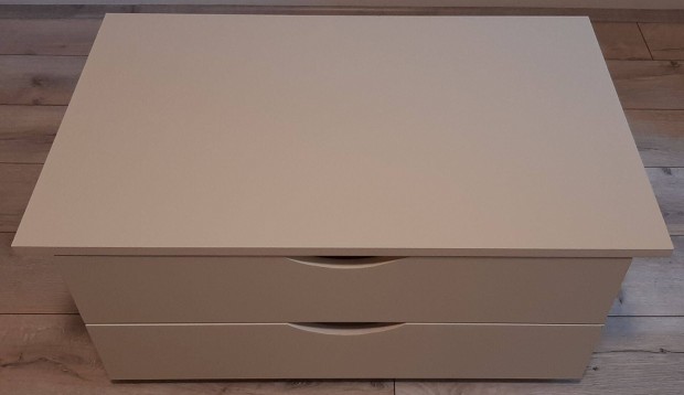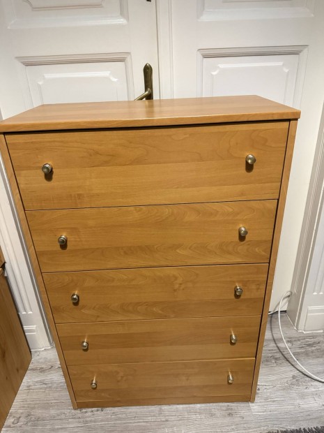 Világos színű fiókos ajtós komód.