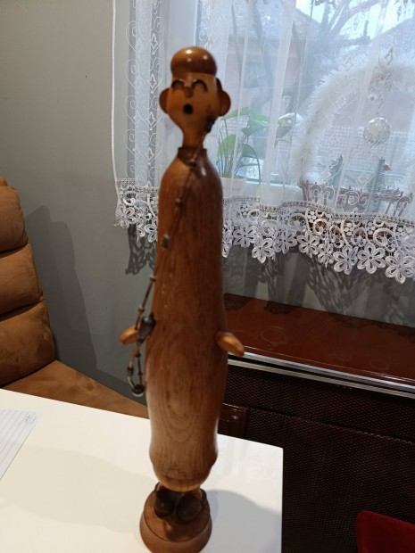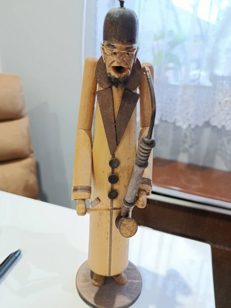 Ritka, óriás antik fafaragás - Lehrer Lämpel füstölő figura (42 cm)