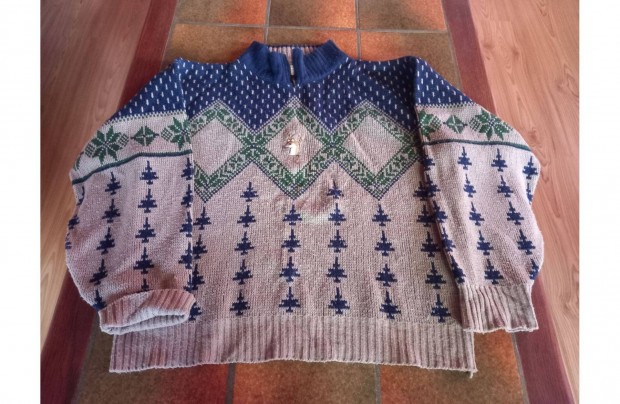 Fenyőfa-szarvas gépi kötött 42-44-es pulóver