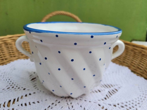 Vintage Gmundner Keramik kék pettyes váza gyűjtemény 6 db