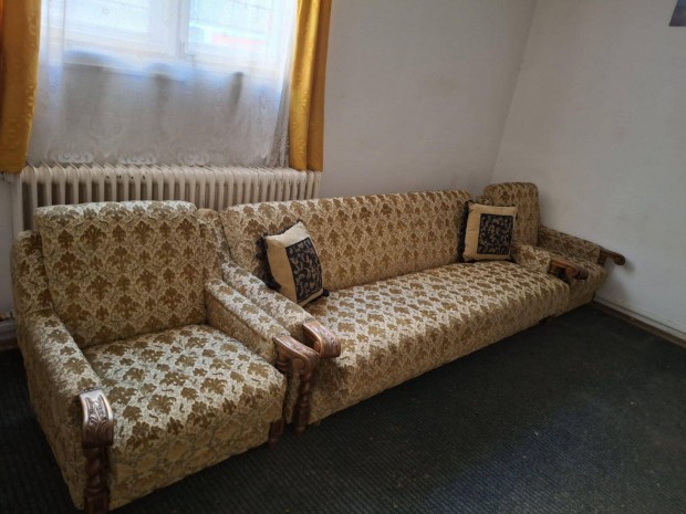Használt fa kanapé fotellel
