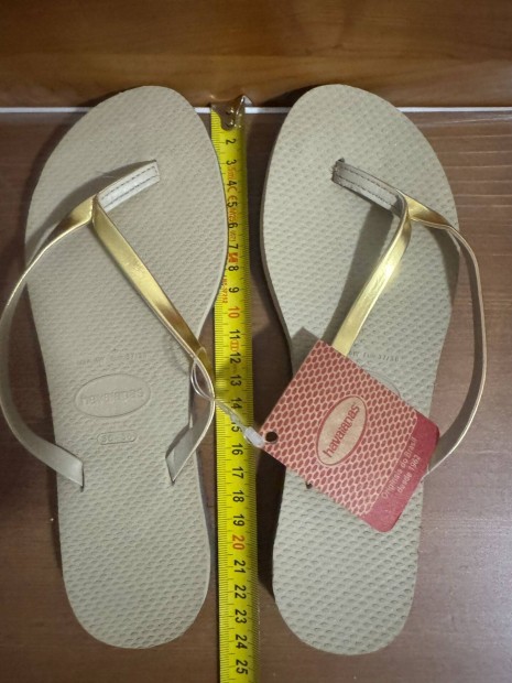 Havaianas papucs, Új, Címkés, Dobozos, Eu 37-38 bézs, arany