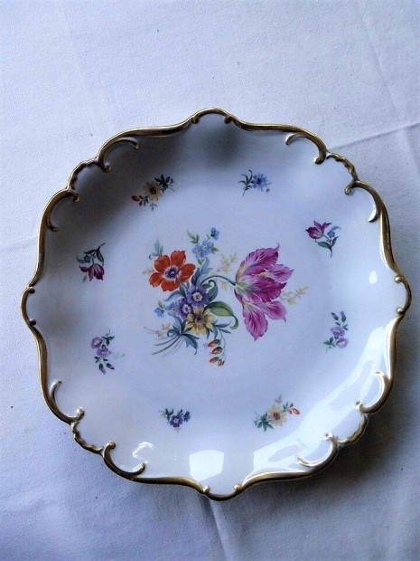 Graf von Henneberg régi arany szegélyes virágmintás kínálótál