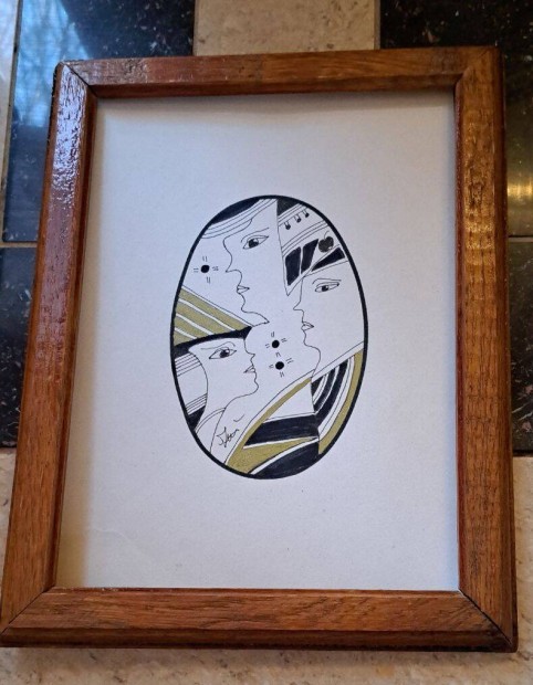 Szász Endre : Tusrajz hollóházi porcelán terv,