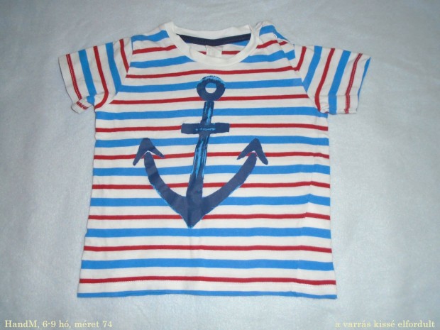 H&M horgony mintás csíkos póló 6-9 hó (méret 74)