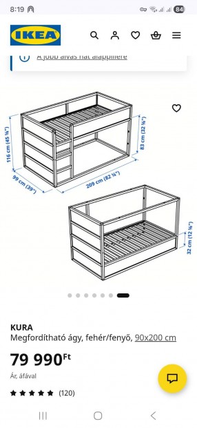 Ikea Kura megfordítható galéria ágy 90x200 cm