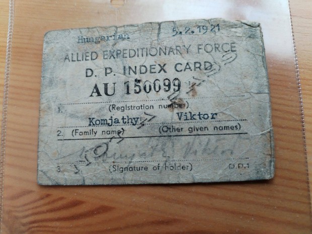 Szövetséges Expedíciós Erők 1921-es Magyar D.P. Index kártya