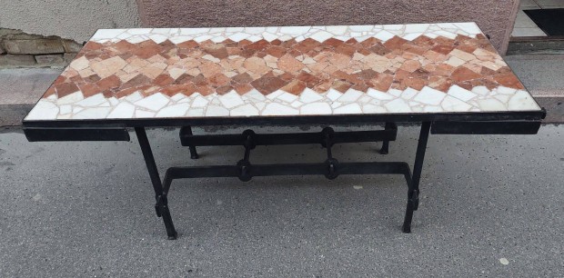 Egyedi, erős kovácsoltvas szerkezeten márvány intarzia asztal
