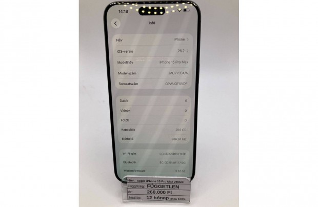 Eladó Apple iphone 15 Pro 256GB