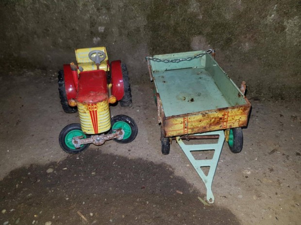 Eladó régi retro Kdn fém játék traktor pótkocsival