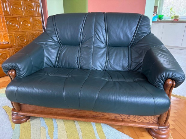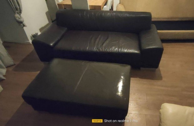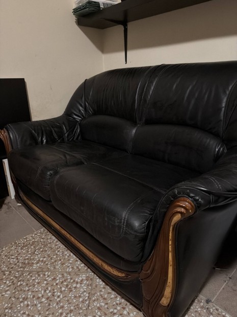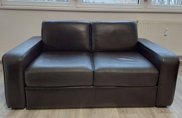 Kétszemélyes valódi bőr kanapé ágyneműtartóval
