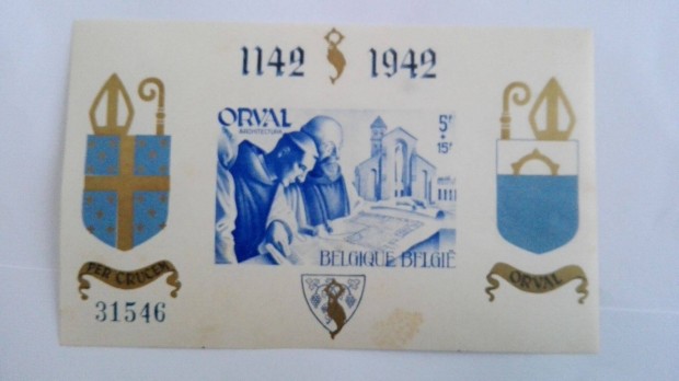 Orval Belga Apátság 1942-es blokkbélyeg falcos