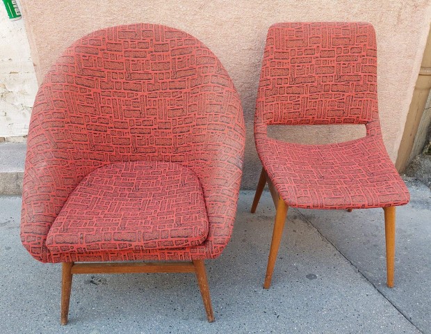 Skandináv stílusú retro kagylófotel és szék eredeti állapotban