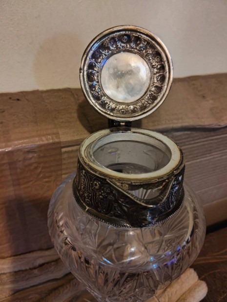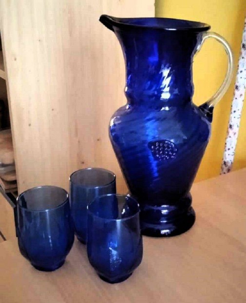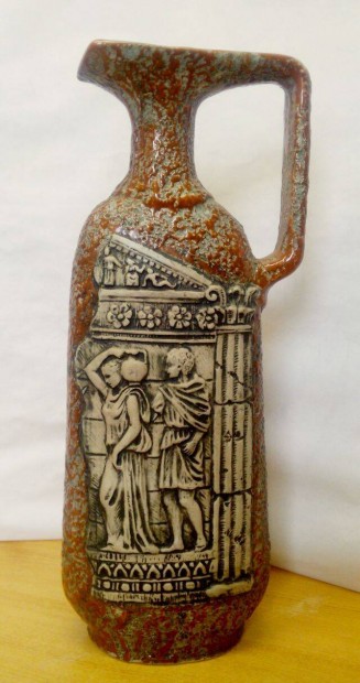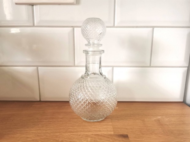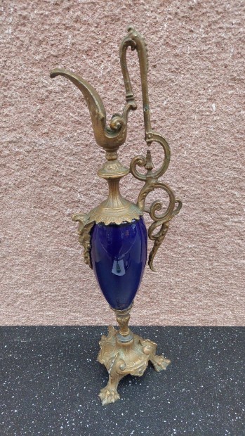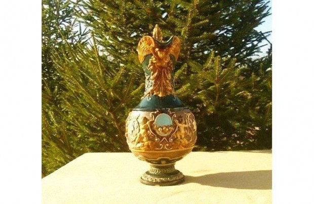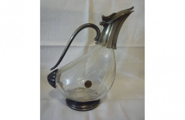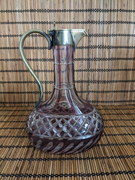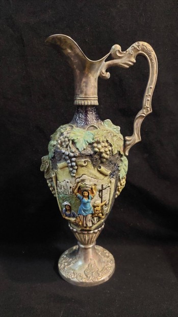 Régi, jelzett, kézzel festett Olasz üveg karaffa , kiöntő
