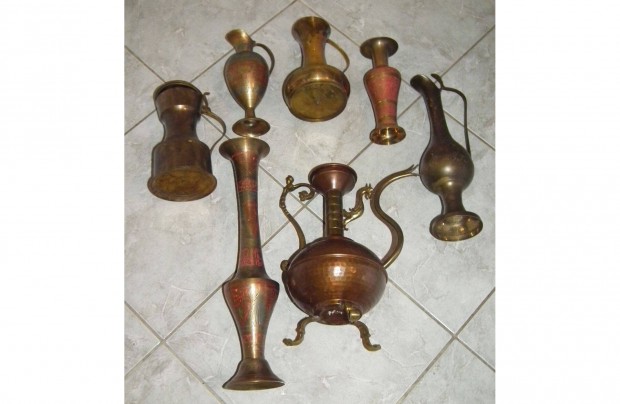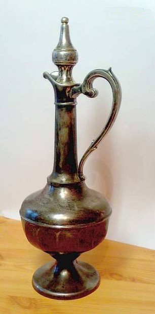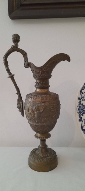 Indiai réz karaffa / surahi / teakiöntő díszes, vintage