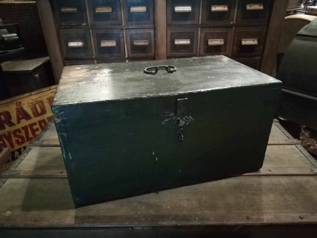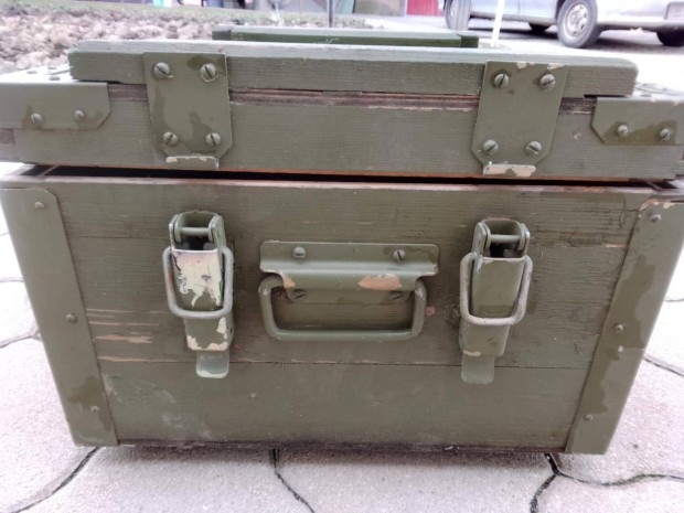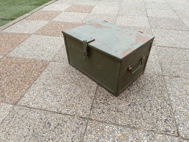 Régi katonai felszereléses láda múltidéző, robusztus darab