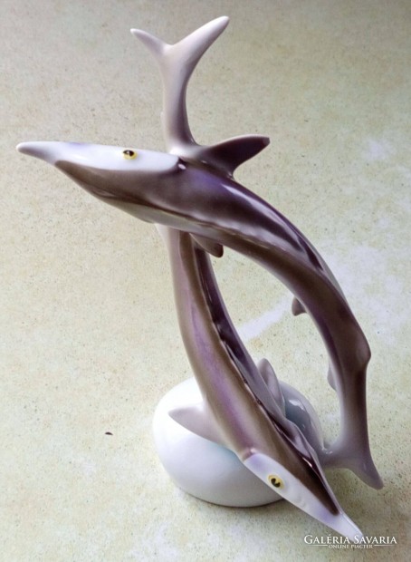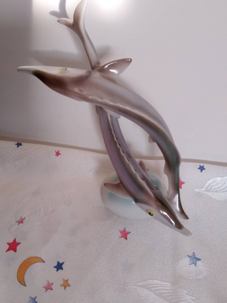 Hollóházi porcelán hal, kecsege páros,dísztárgy, figura