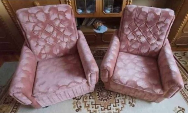 Retró kinyitható kanapé, ágyneműtartóval, 2 db hozzá illő fotel