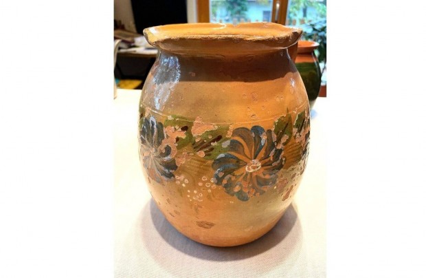 Mázas cserépedény , szilvalekváros köcsög