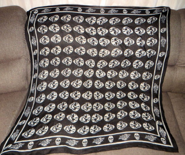 Női sál (Koponyafej mintás) narancs-szürke eladó!