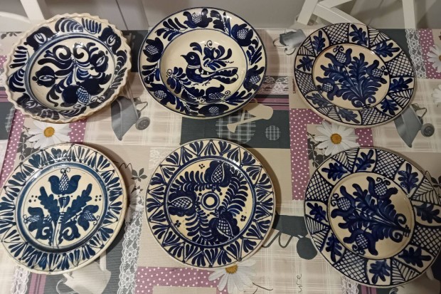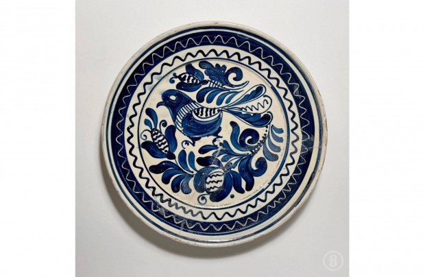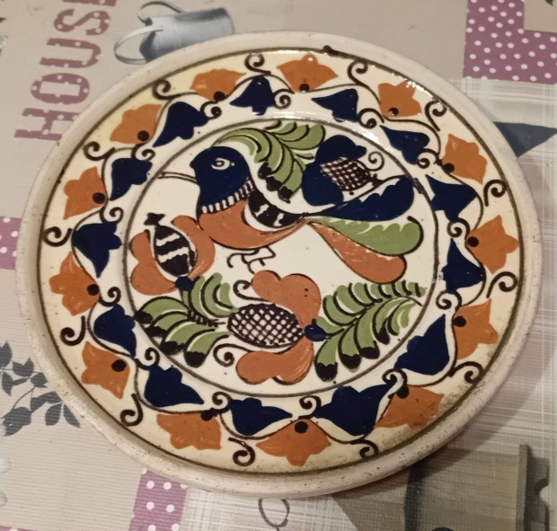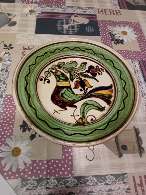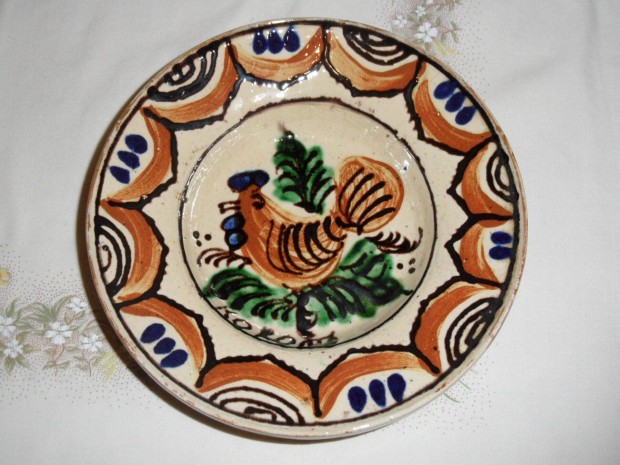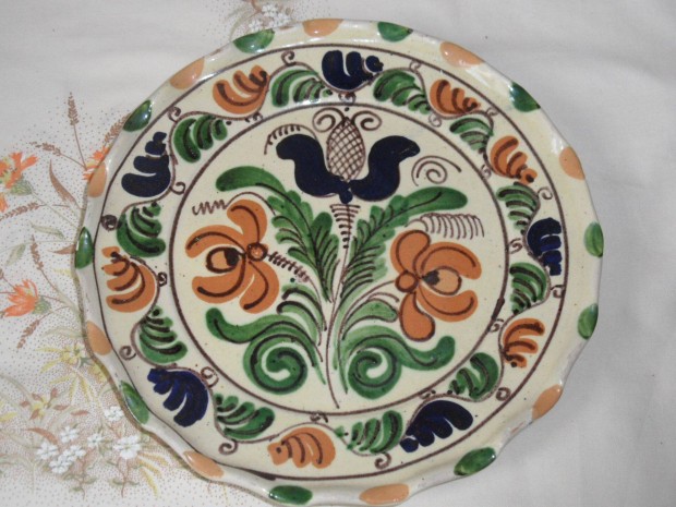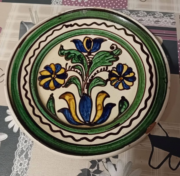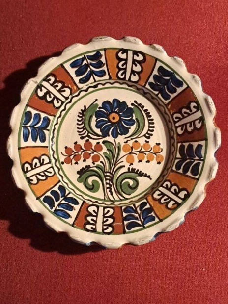 Szignált korondi népi kerámia falitál Molnár Vince, Erdély