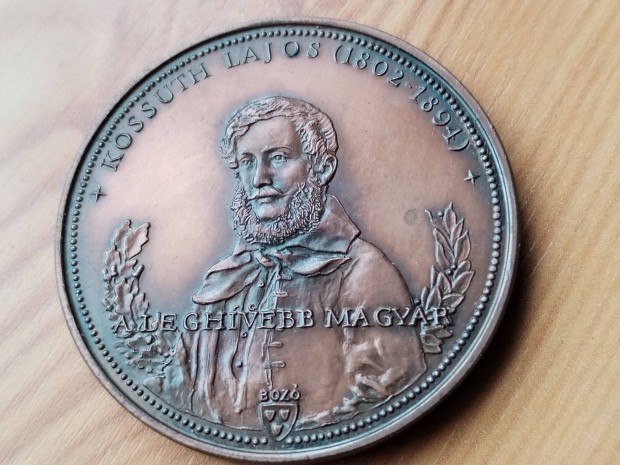 Bozó Gyula éremművész "Kossuth Lajos" jelzett bronz érem