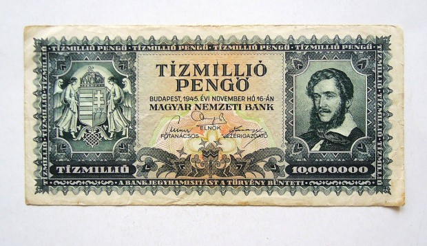 Régi 10 millió pengő bankjegy 1945 Kossuth