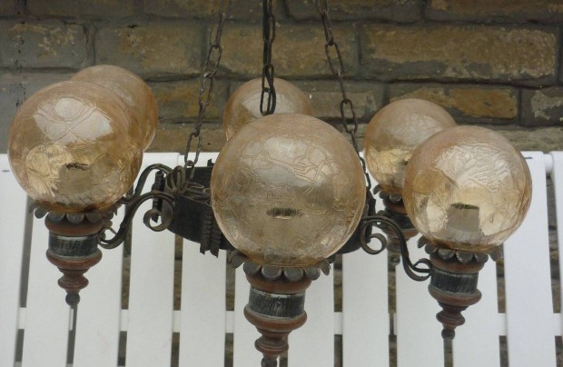 Fa, kovácsoltvas, üveg mennyezeti lámpa