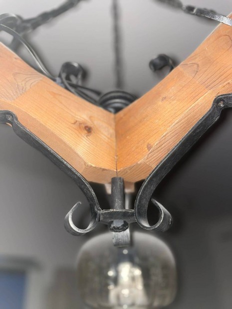 Fa és kovácsoltvas mennyezeti lámpa