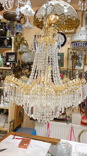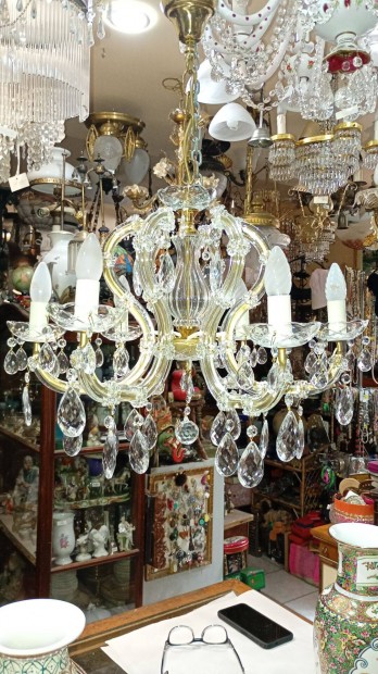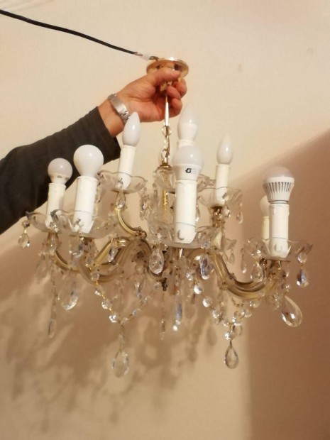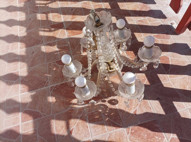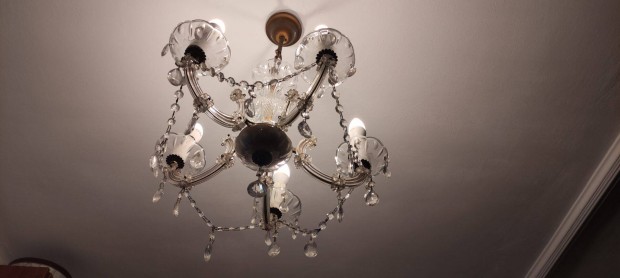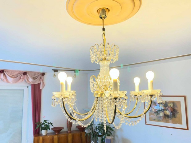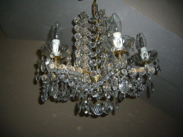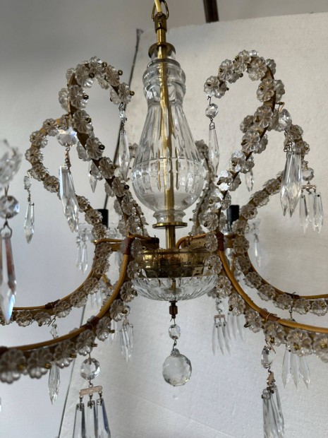 Vintage kristály csillár 3 ágú retro mennyezeti lámpa