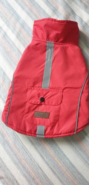 Meleg piros kutyakabát hámmal kistermetű kutyára