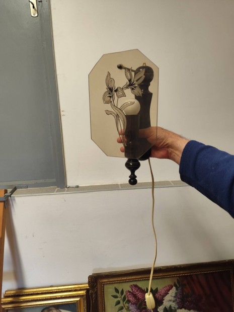 Régi, retró hosszúkás fali lámpa (búrás)