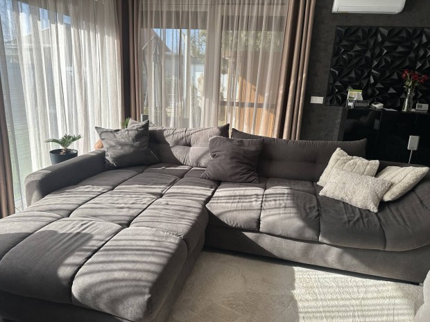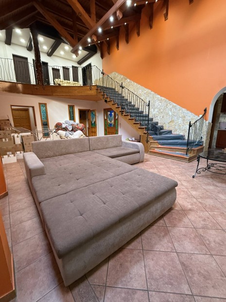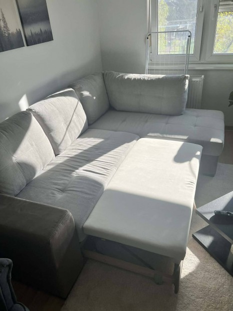 L alakú nagy kanapé, kihúzható, ágynemű tartós