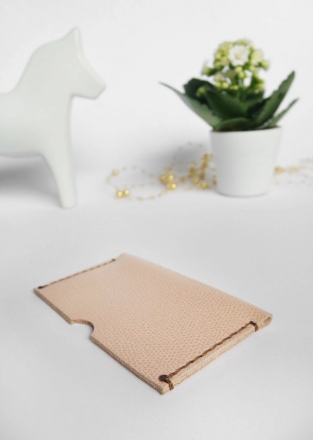 Valódi Bőr Bankkártyatok - Prégelt pasztell-lazac