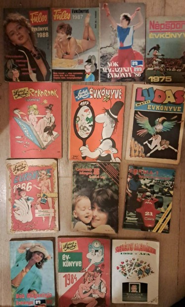 12 db évkönyv: Füles, Lúdas Matyi, Népsport, stb