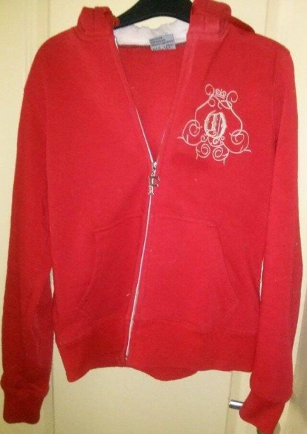 Női piros kapucnis L, piroskötött lyukacsos felső L