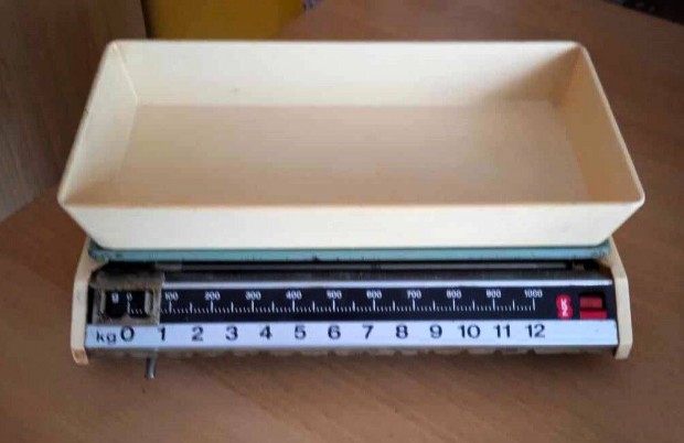KZ, manuális retro konyhai mérleg műanyag tálcával