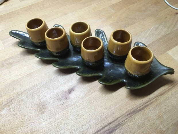 Tölgyfa makkos pálinka kínáló készlet porcelánból
