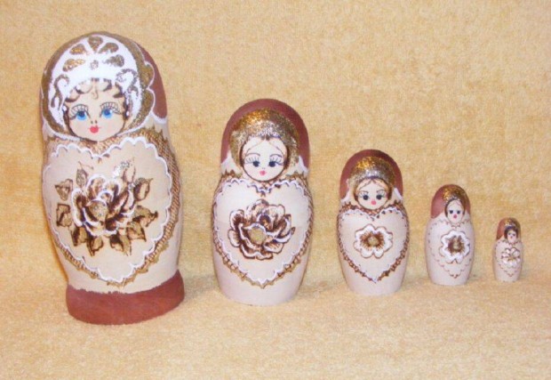 Matrjoska baba gyűjtemény (több darabosak) natúr arany színes